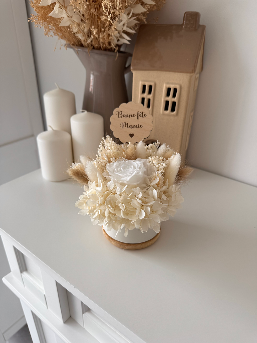 Composition florale & médaillon bois